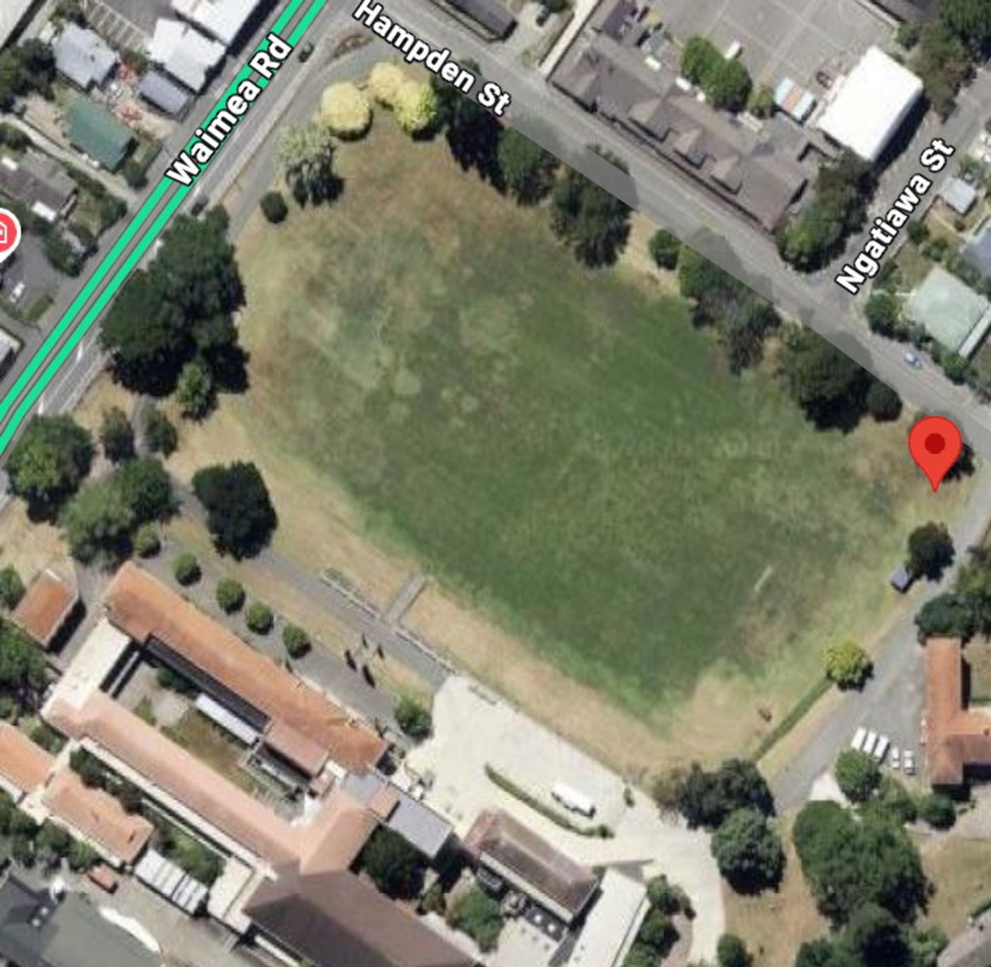 Parking is at Hampden Street and Ngatiawa Street - see photo below. Please don't park on the school grounds.