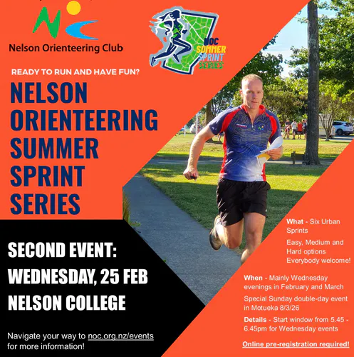 The second event of the 2026 Summer Sprint Series will be held at Nelson College for Boys on Wednesday, 25 February 2026. To win, you'll need to run, but walking the course is perfectly fine...